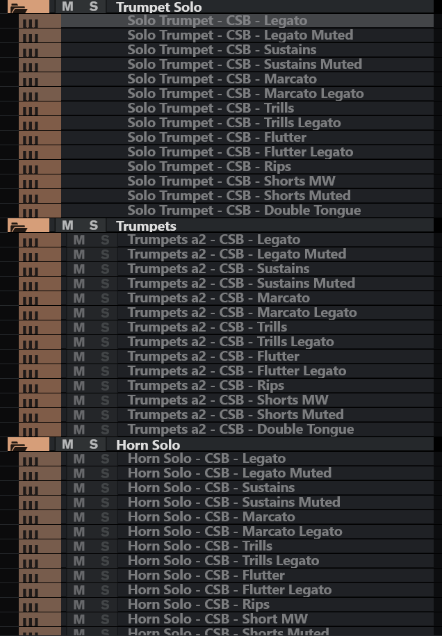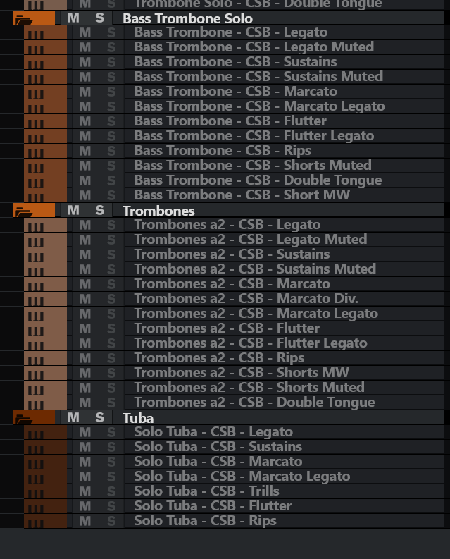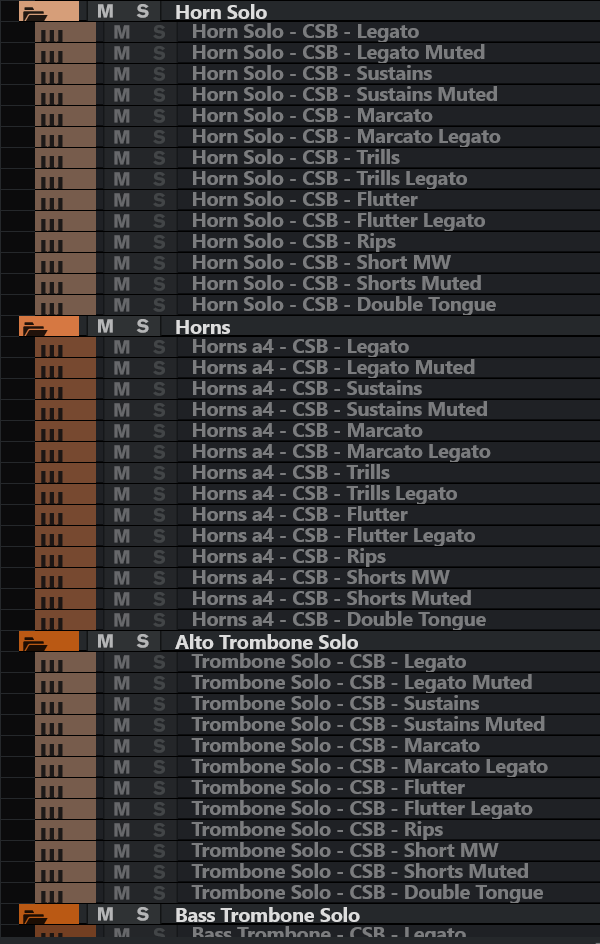 - All tracks are named as following " [Instrument Name] - [Library] - [Articulation] "