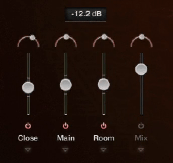 MIC POSITIONS TOTAL CONTROL- The 4 mic positions (Spot 1, Spot 2, Main, Room) are assigned to MIDI CCs within Kontakt for each track :